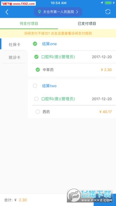 1、医生开具检验、检查申请或处方后,在APP"诊间支付"中查看"待支付项目",并进行费用支付。