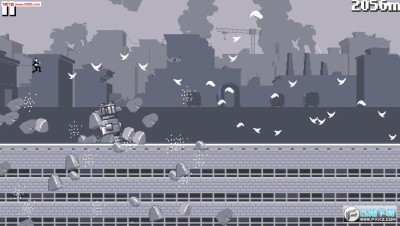 《Canabalt》是一款奔跑类游戏,玩家需要控制主角在各个危险的大楼之前奔跑,从而逃离危险的境地。游戏整体式带一股黑色幽默的味道,灰黑的配色好像都在寓意着人类文明的终结。
