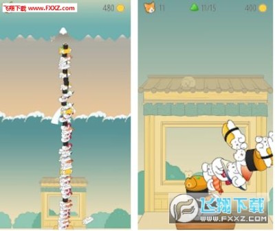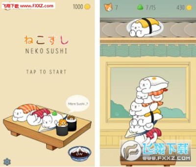 猫咪叠寿司手游中一只一只的寿司将会以猫的形态出现,不同的猫咪寿司代表不同的口味,玩家需要将这些寿司叠成一个高塔,高度越高,整体的分数就会越高,想玩猫咪叠寿司手机游戏的小伙伴们千万不要错过哦