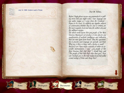 在游戏中,你会遇到超过40个来自维多利亚时代的角色来配合你,一步步揭示出数以百计的线索以及问题来成功调查。福尔摩斯VS亚森罗宾是一场巅峰之战,包括第一人称控制和第三人称控制(补充:第一人称就和CS差不多,第三人称就是你能直接看到你自己……)。画面只需中等硬件配置但是会有有吸引力的动态照明的三维图样,这是游戏的谜题不可分割的一部分。这个福尔摩斯的新冒险融会贯通了许多文化的知识,知识在故事发生时适当地分布着。方便的游戏记录功能,您可以在任何时间提醒自己发现的文件数目,资料或者游戏中发生的事件。也许你会设法将线索联系在一起,找到罗宾……