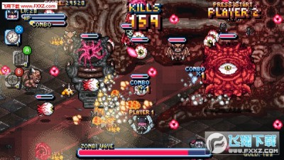 Riddled Corpses是Daniel Fernandez Chavez制作的一款8/16Bit像素风格的飞行射击游戏。本作一共有6个可操作角色,每人都有着自己的射击风格和特殊技能。玩家需要通过6个不同的阶段,如城市或沙漠。每个场景都会有新的敌人,但所有的僵尸都和状态相关。
