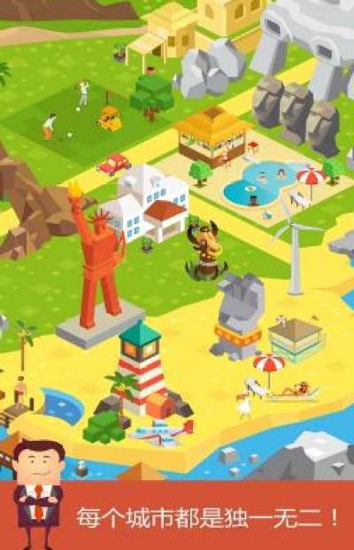 资源是城市的重要产物。通过工厂、商业建筑以及港口、机场等途径收集不同的道具资源,建造并解锁包括:公园、沙滩、高山、地标、巴黎小镇、伦敦小镇、东京小镇在内的各式建筑,从而为市民们带来更多的欢乐,让城市充满勃勃生机。