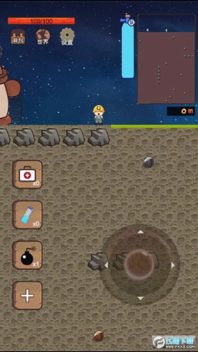 在地下氧气是一种非常重要的资源,每在地下多待一段时间,都将消耗一定氧气,在地底越深,消耗的氧气量越大,当氧气消耗完毕之后,将会对你造成血量伤害,血量为零是会死的哟!当氧气即将耗尽时,可以通过回到地面补足氧气,也可以使用道具补充指定数量的样子,一定要随时关注右上角氧气量哟!