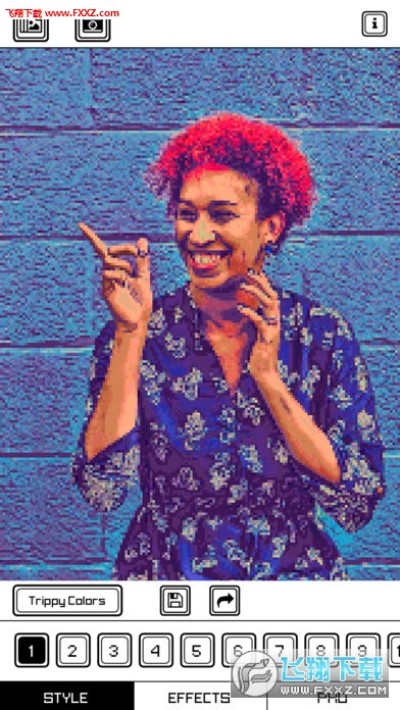 本作内建 10 种像素风格即时滤镜 ( 若要解锁其他的滤镜需升级至 Pro 版本 ),可以帮图片与影片创造出特别迷幻效果的颗粒感哦 !
