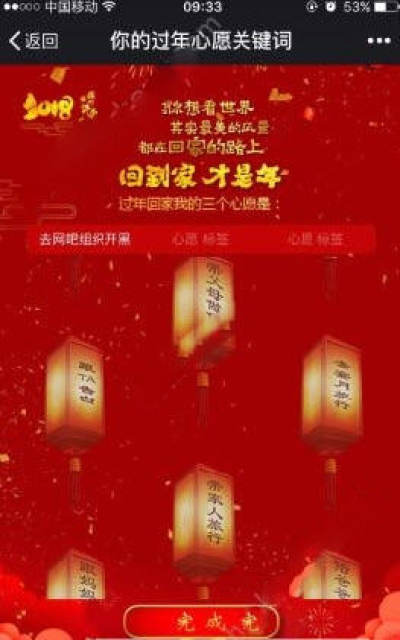 2、选择过年回家的三个心愿,点击完成;