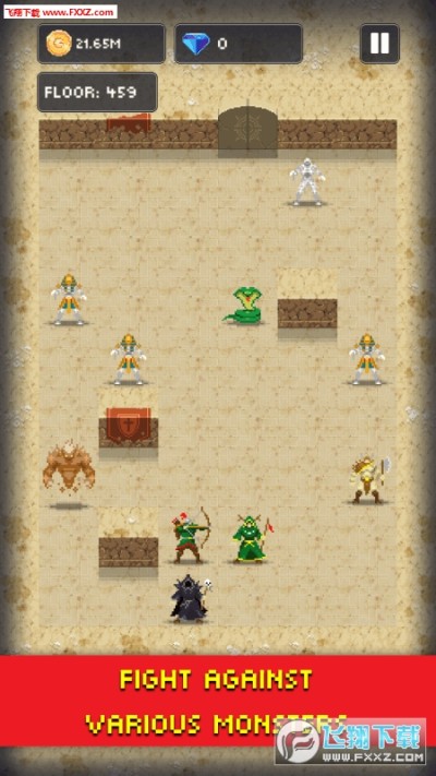 Dunidle是一个二维像素图形风格的空闲的RPG地牢爬行游戏。