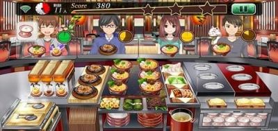 游戏内的可製作菜单达200种以上,包含寿司、串烧、拉麵、咖哩等日本美食,汉堡跟中华料理也会登场。最初玩家所能经营的虽然只有小小的寿司店,但随著通过关卡,店面将会变得豪华并且定期收入也会增加。继续进展下去的话,就能解锁寿司店以外的餐厅,不断製作料理之后,就能发展为美食小镇;