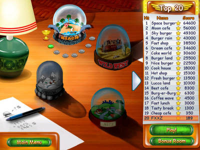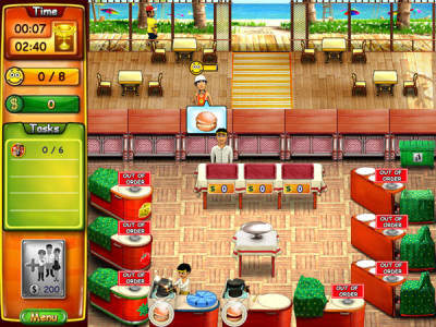 游戏是一款标准的时间管理游戏,游戏中玩家将会指挥主角制作汉堡,并增加各种风味的配料,包装给顾客。游戏中提前预判很重要,在开始汉堡种类不多的时候可以提前做好放在台子上,当客人决定以后直接给客人,因为客人多的原因很少会出现汉堡做出来没人要的情况。游戏中有一个汉堡店排名,每通过一关,你的排名就会往前提升一些,游戏中的店铺也可以更改装饰和升级道具。