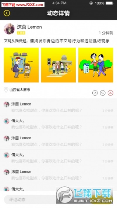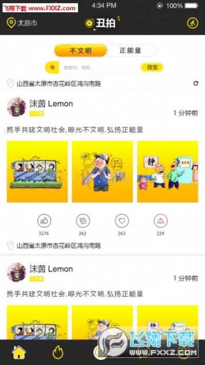 通过定位记录身边的不文明行为及正能量行为,使事发地附近的群众很快时间就能看到,引起附近的人关注,提高曝光率和有效性。
