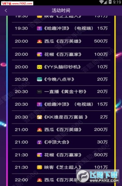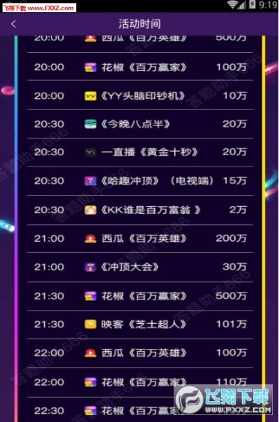 1、每天有多场在线答题活动,用户可以通过这款软件报名参加。