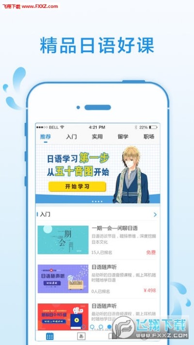 日语入门,选我就对了!亲密的日语学习小伙伴,学霸和非学霸都爱用的入门神器。为日语爱好者量身定制,日语零基础起步,随时随地学日语,让日语知识触手可及,全面提升日语听、说、读、写。更深入解读日语50音图,由浅入深、包罗万象的日语精品好课。