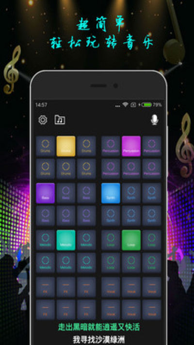 电鼓垫是一款可以让你像专业人士一样制作属于自己的音乐,创作酷炫节拍,完善并演奏独特曲目的音乐制作工具!自带八条循环音轨,将鼓垫、打击乐器、贝斯、旋律、人声、FX音效等搭配创作出全新的音乐。尽情享用这款功能强大且简便易用的工具,获得最佳音乐体验吧!!只需点击彩色键盘即可创作出好听的电子音乐,进入一个动人心弦的混音世界!