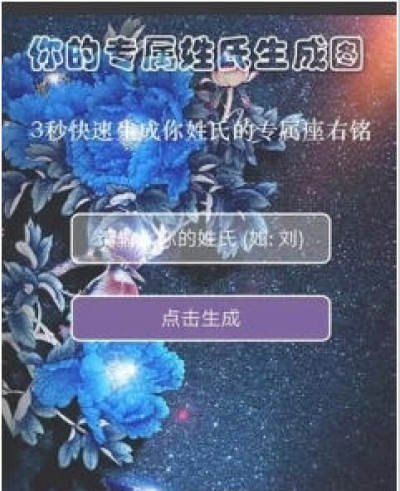 可以生成由文字组成的姓氏图片,只需要用户自己选择姓氏,就可以自动生成姓氏图片!