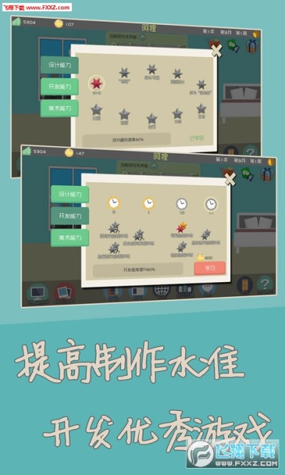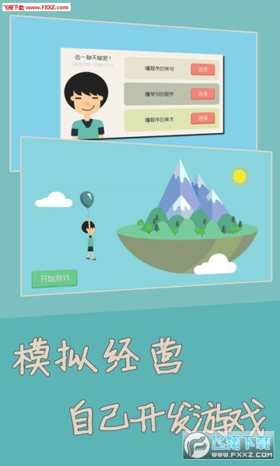 游戏开始需要在以下职业中选择一个:策划、程序、美术,但是在游戏过程中可以不断的提升各方面能力,最终实现自己全能开发者的梦想。