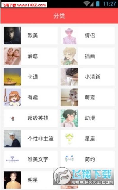 3、提供十多个分类,分类清晰明确,快速定位自己的爱好。让你的头像与众不同,个性十足。