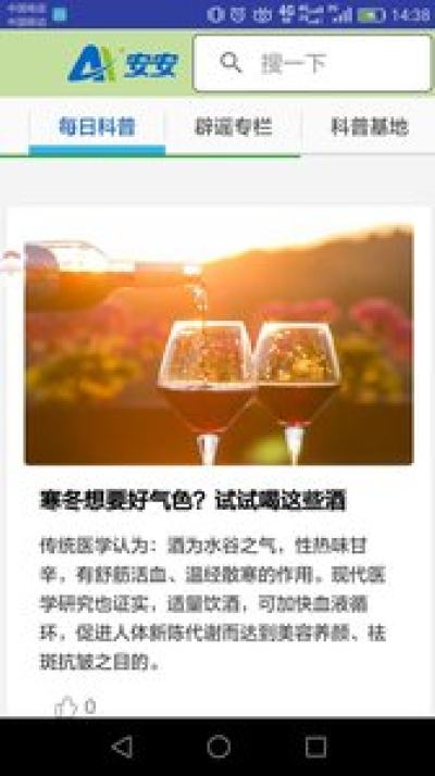 安安科普app安卓版是广东省食品药品科普公益网站“安安网”官方推出的手机客户端,这款软件主要为了给各位用户提供一些关于食品安全方面的信息,还有自己搜索查找,权威专家为你科普,需要的快来下载吧!