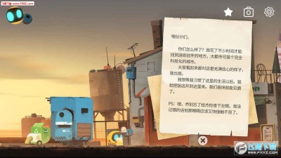 你会觉得在看一场动画片,感受游戏中人物的喜怒哀乐,探索末日后的废土世界,除了Abi外,还可以控制另一位重型搬运用机器人:DD,充满温柔配色的黄沙和机械零件,谜题设计难度适中,未到《机械迷城》的困难级别,但也十分有趣,关卡场景设计通过平面切割的方式来展示,既保留画面的完整,又避免过于复杂的操作体验!