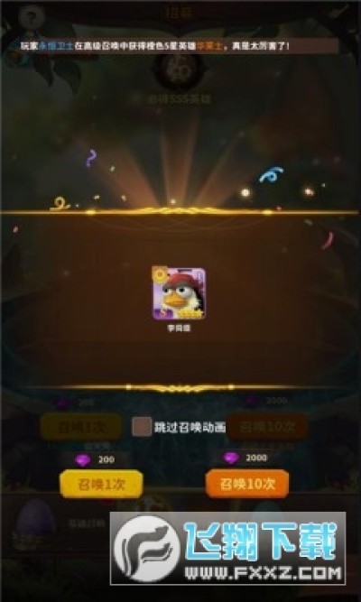 2、随机的抽取不同的卡牌,获取不同的鸟英雄,自由的培养升级属性;