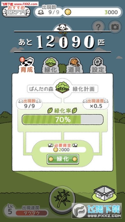 2.金币用来给熊猫升级,还可以购买绿化和新品种的熊猫。