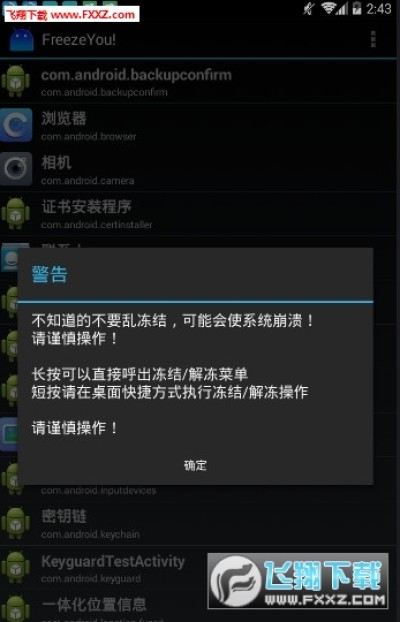 需要注意的是本软件功能强大,会直接的冻结各种应用,随意在操作的时候不要随意的冻结,不然会造成手机崩溃情况!
