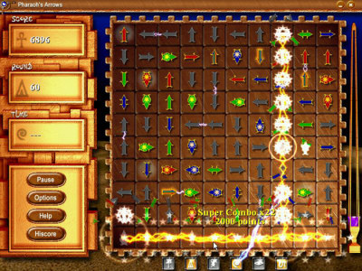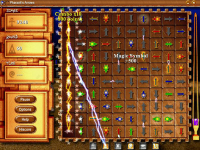 游戏分为2种模式:经典模式和时间模式,每种模式各有60个关卡。经典模式下玩家以消除所得到的分数为奖励条件,而时间模式下则需要在限定时间内消除箭头。 游戏非常容易上手,相同属性的箭头消除后还会触发连锁反应,一举消除大量诅咒之箭,非常的爽快。