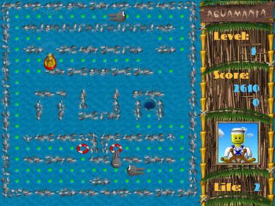 统吃豆风格的游戏画面舞台变为了海洋,轮船移动的动画和海洋的动态让游戏的进行变得更加生动有趣,4种不同类型的敌人也丰富了游戏的内容。简单而具有节奏的音乐让游戏的气氛变得轻松活跃,简单的操作和有趣的迷宫会让你的心情得到转换。在游戏中你要挑战35个不同的关卡,6种不同的奖励将帮助你取得好成绩,游戏中还会遭遇到大章鱼,偷猎者和海盗群的攻击,只要身手敏捷你一定可以化险为夷。