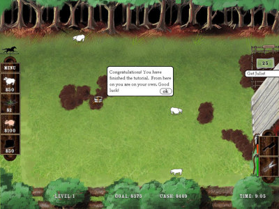 包括30个不同的关卡,你会在农场中遇到各种有趣的动物如胖胖猪,毛绒绒的羊,邪恶的狼,和一只非常可爱的牧羊犬!也可以到商店升级你的道具来增加能力。可以进行限时或不限时间模式的游戏