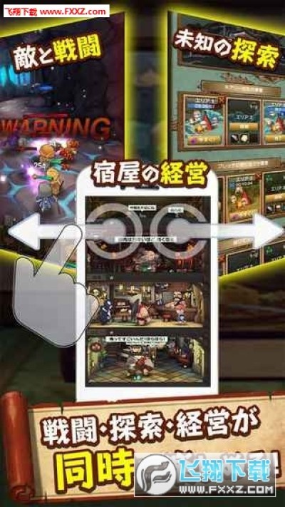 游戏中玩家可以在未知的领域上探索,开发旅馆,左右滑动可以系统,收集充满个性的英雄,经营旅店。