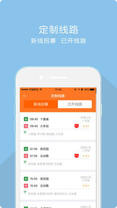 合肥定制公交是一款依托网络平台的智能公交服务APP,强大的数据服务支撑可更好的满足公众出行多元化需求,倡导绿色出行,是合肥人公共出行的百宝箱!