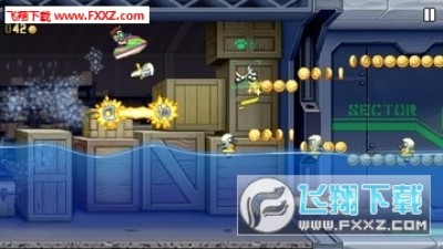 火箭飞人游戏是一款横版酷跑游戏,游戏主角巴里(Barry)潜入了一座神秘的工厂,夺走了邪恶的科学家们正在研制的个人火箭飞行器。跟着他利用火箭飞行器逃离出这个神秘工厂吧。用飞行器上的机枪驱赶邪恶的科学家,上下飞行来避开工厂里各式各样的障碍物,收集金币,得到尽可能高的分数