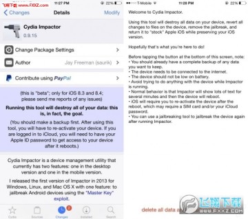 注意: 此工具处于 beta 阶段只支持 iOS 8.3 和 iOS 8.4,您的系统所以可能会发生变化。一定要备份您的设备,因为这将删除所有的设置、程序和内容。它将删除所有越狱有关的东西,"unjailbreak"你的 iPhone。你将依然是在相同的固件,但您的所有数据将被清除。谨慎行事。