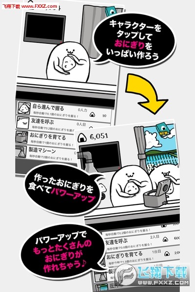 点击圆滚滚的角色,制作饭团。点击的次数越多,增加的饭团量就越多。