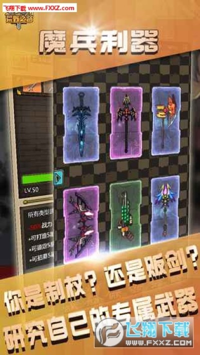 《荒野之路》是一款经营挂机类游戏作品,玩家经营着一个出售武器的商店,武器可以通过材料打造或者通过出击敌人获得,游戏里武器品质越高出售获得的金币越高。简化的经验模式让玩家更容易上手,而且半挂机的游戏方式,也更适合手游的碎片化游戏时间。