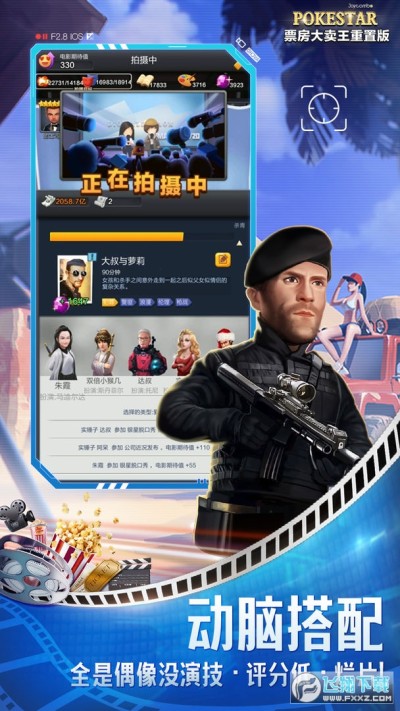 - 选择剧本,指派艺人,拍摄适合类型的电影。