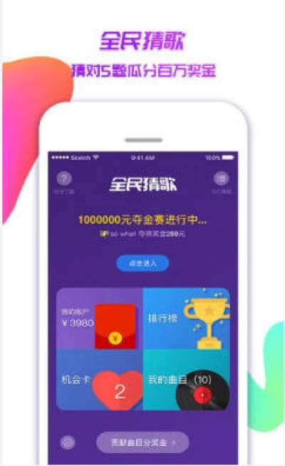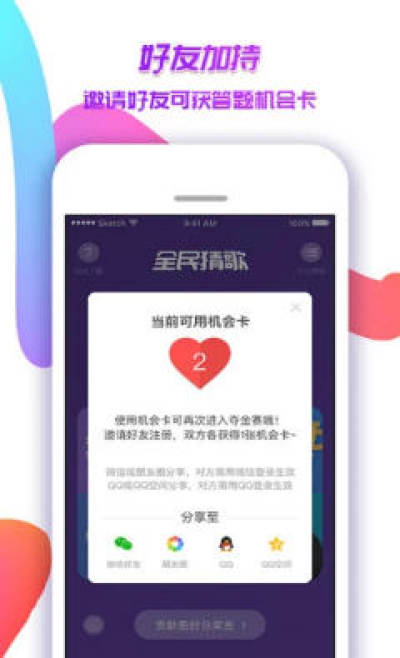 1.参与全民猜歌夺金赛,猜对5首歌即可通关,获胜者分享当场奖金红包,越早通关奖金越大。