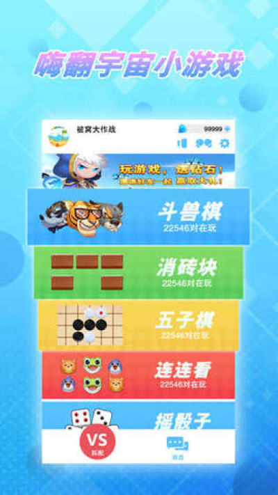 嗨翻宇宙的小游戏对战平台,单机pk任你选,女神鲜肉任你撩!