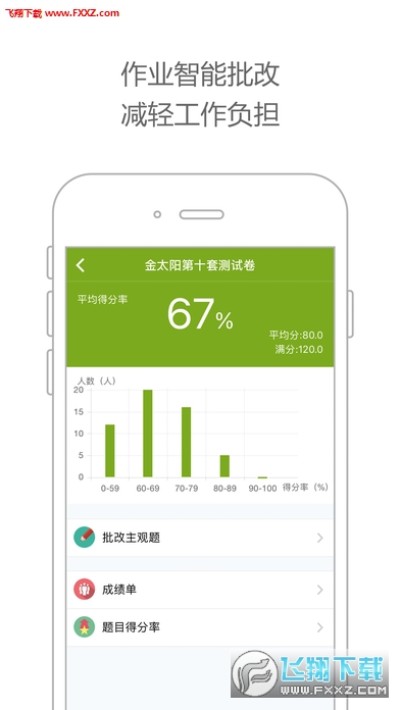 ● 作业智能批改,减轻工作负担。一台手机几分钟即可完成全班纸质作业的批改,且实时统计呈现学生作业情况。