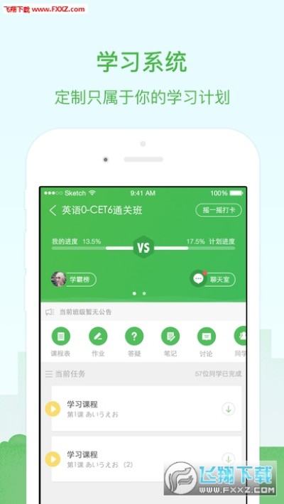 2、专业学习系统:通过每日任务化的学习系统,学课程,做作业,完成测试,查看学习报告,让学习有章可循,不再拖延;