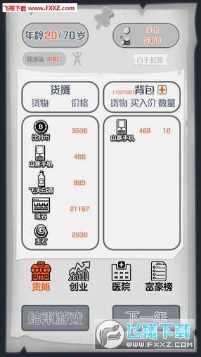 《一亿小目标官方版》是一款极简风格的模拟经营类游戏,游戏中玩家需要完成赚取一个亿的小目标,在保持自己的健康的前提下,不断的通过购买和出售货物赚取金钱,需要玩家随时随地的把握市场关注行情,喜欢的这款游戏的玩家快来试试吧!