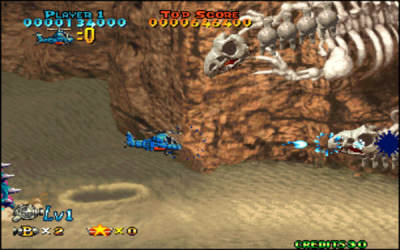 这款模拟器上的横版射击游戏号称是1989年恐龙岛1930的续作,但实际上制作者已经换成了梦工房.看来因制作同类型的Blazing Star一炮而红的梦工房在横版stg上的造诣还是可圈可点的。