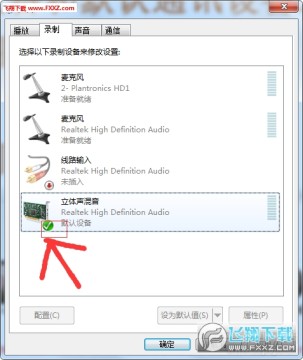 然后右键立体声混音设为默认并且设备和默认通讯设备之后 立体声混音旁边有个绿色对勾就OjbK了(如下图)