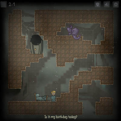 游戏的故事安排其实十分简单,就是一个小男孩不断的在噩梦中惊醒,却发现自己醒来后仍然在另一个噩梦之中,男孩在噩梦中不断的前行找到噩梦的源头,从而解开所有事情源头脱离噩梦。游戏故事虽然简单,但是极具深意。通关发人深省。不得不佩服作者对游戏的掌控没有一个高度是无法做出这样的游戏的。