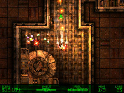 PiEye Games游戏一向以美伦美央的画面著称,这款最新作品也不例外。奇幻瑰丽的神秘背景,闪烁夺目的宝石和五彩斑斓的色彩效果会让你的视觉感受达到顶点。游戏比较考验操作,任何轻微的碰撞都会对飞船造成损伤,你必须万分小心不要撞到墙壁、敌人和敌人的子弹上。