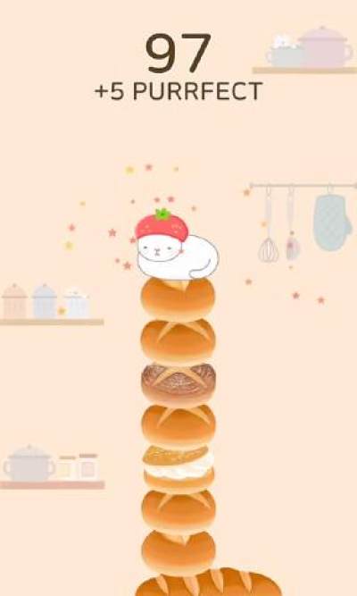 -猫咪跳跃类休闲模式,你将需要不停的在面包上面进行跳跃;