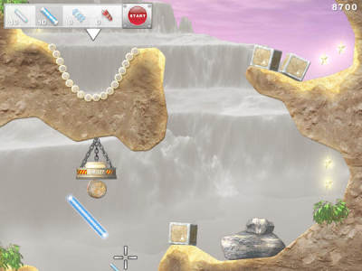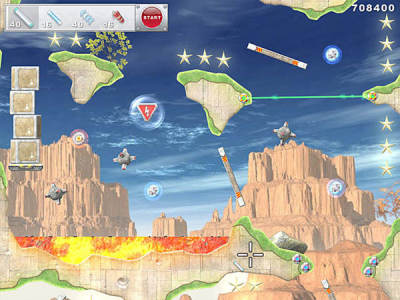 游戏中的道具安放之后不能修改,只能取消,这不得不说是一个缺点。游戏的路线不可能一蹴而就,你得反复的尝试,按start让油桶掉落观察它的路径,不断调整你摆放的位置才能过关。