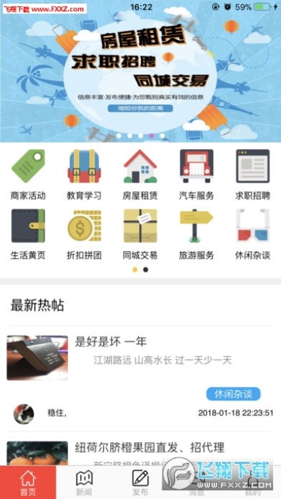 烽火集宁是一款社区生活类APP,为集宁百姓提供一个信息交流的平台,平台提供包括当地的美食娱乐分享,房屋租售信息,汽车服务,旅游服务等信息的交流互换