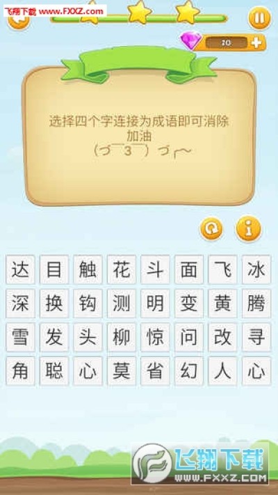 1、游戏规则简单,像消灭星星一样按顺序选出一个四字成语即可消除;