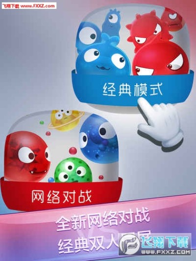 《红蓝大作战》是一款益智休闲类游戏,游戏中一方控制红色病毒,另一方控制蓝色病毒,开始前选择比赛次数。本游戏中包含了14个竞争小游戏,在游戏中不停狂点屏幕病毒会不断膨胀,看谁的手速快,能压扁对手。点击屏幕中的小病毒,让屏幕中所有小病毒的颜色相同。