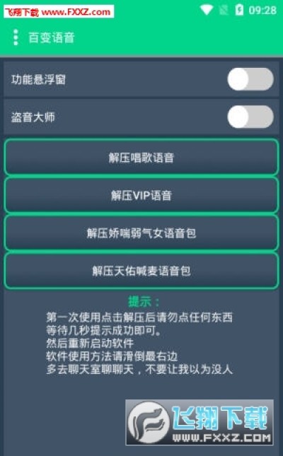有软妹纸语音,也有汉子语音,能在群里调戏群友,还可以把您变成的任何声音发到微信、来往陌陌,丰富的语音,保证别人听不出来你原本的音色。