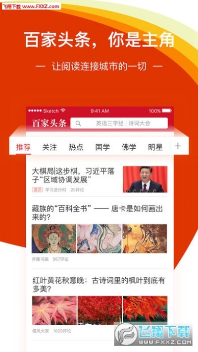 百家头条,你是主角。让阅读连接城市的一切,分享精彩每一天。文化创意,人人阅读,文化复兴中国梦。百家头条APP是一个海纳百川的文化平台,百家争鸣,传承文化,百家讲坛,共享文化。传承国学经典,弘扬中华美德,光大百家文化,打造城市名片,提升文化自信,展现中国精神。既有官方文化资讯发布,也有大众生活交流分享。让阅读受益,让知识升华,让大家的头条更有文化。意见领袖?普通百姓?在这里都是主角!